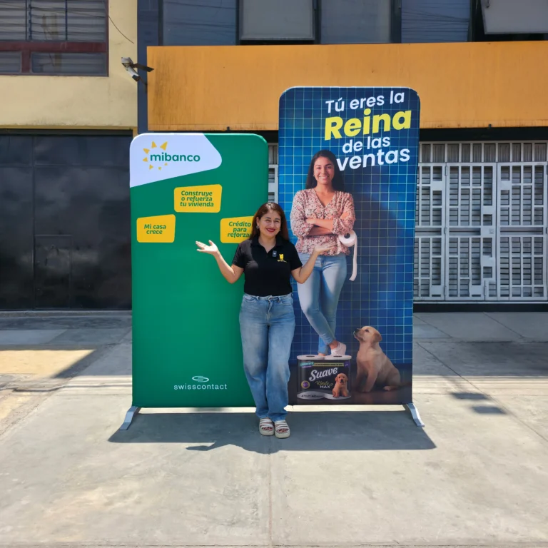Fabricado en tela sublimada full color, ofrece una gráfica de gran calidad visual, perfecta para destacar en activaciones, ferias, puntos de venta, ingresos a locales, eventos corporativos y más.