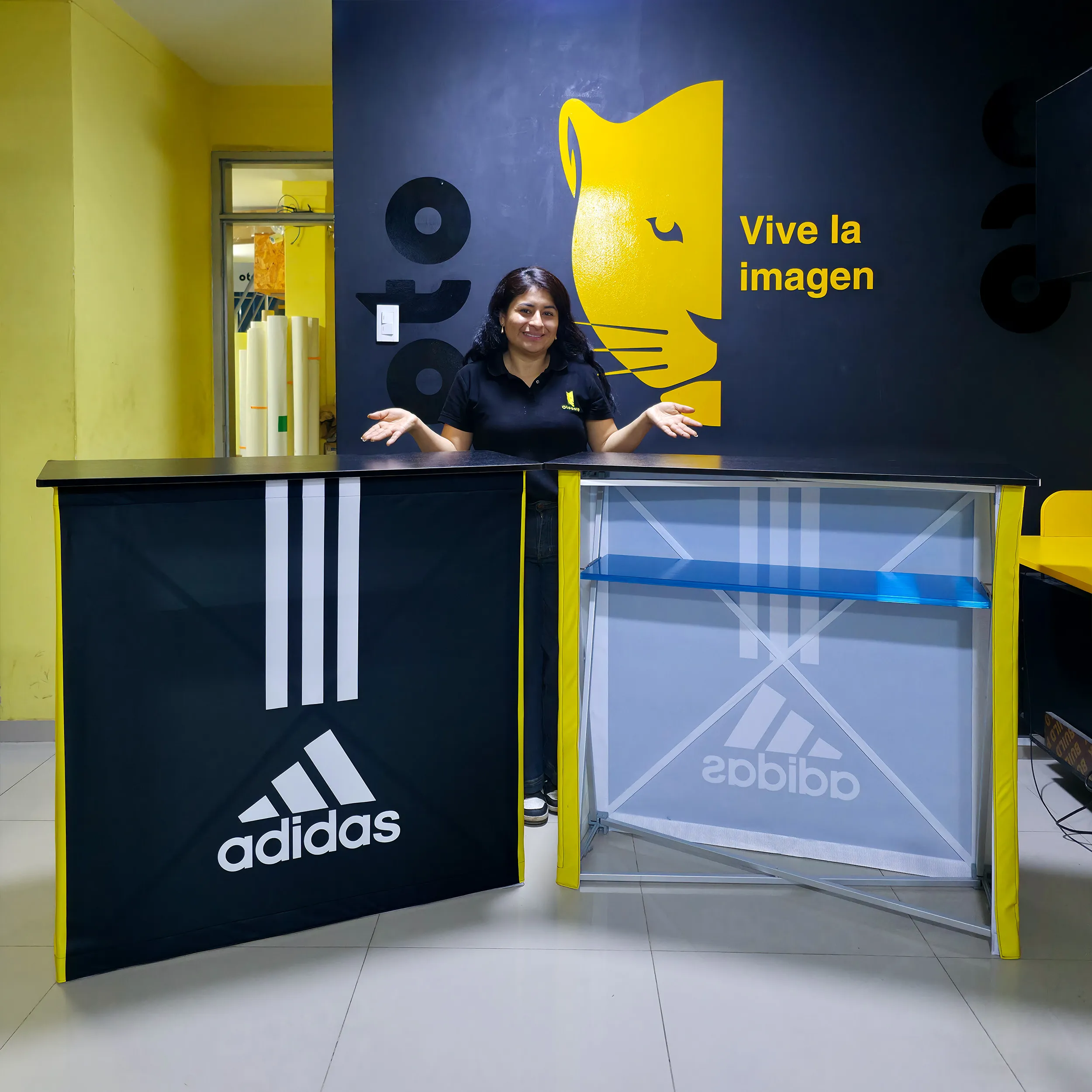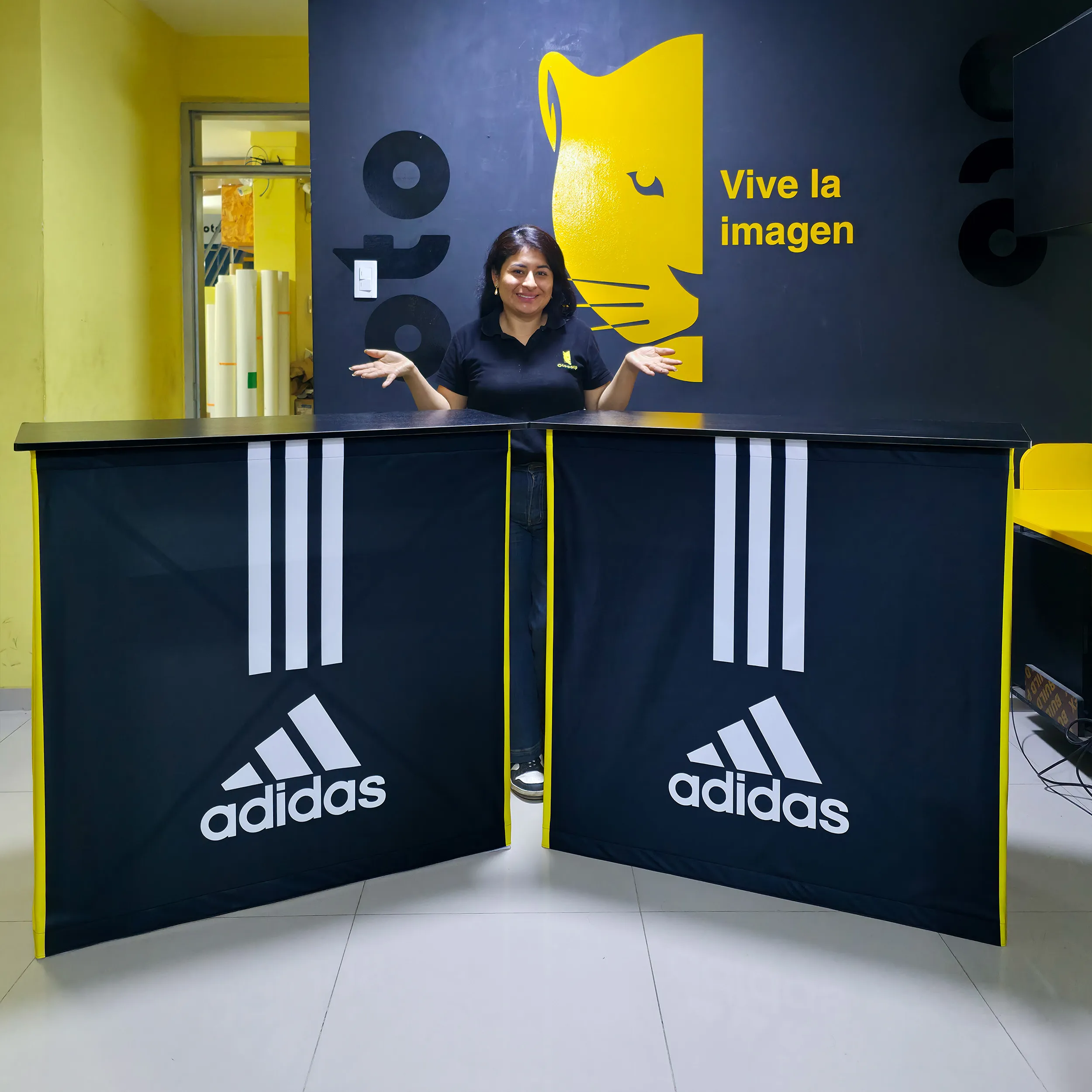 La gráfica está realizada en tela sublimada a full color totalmente personalizada y se une a la estructura a través del velcro.