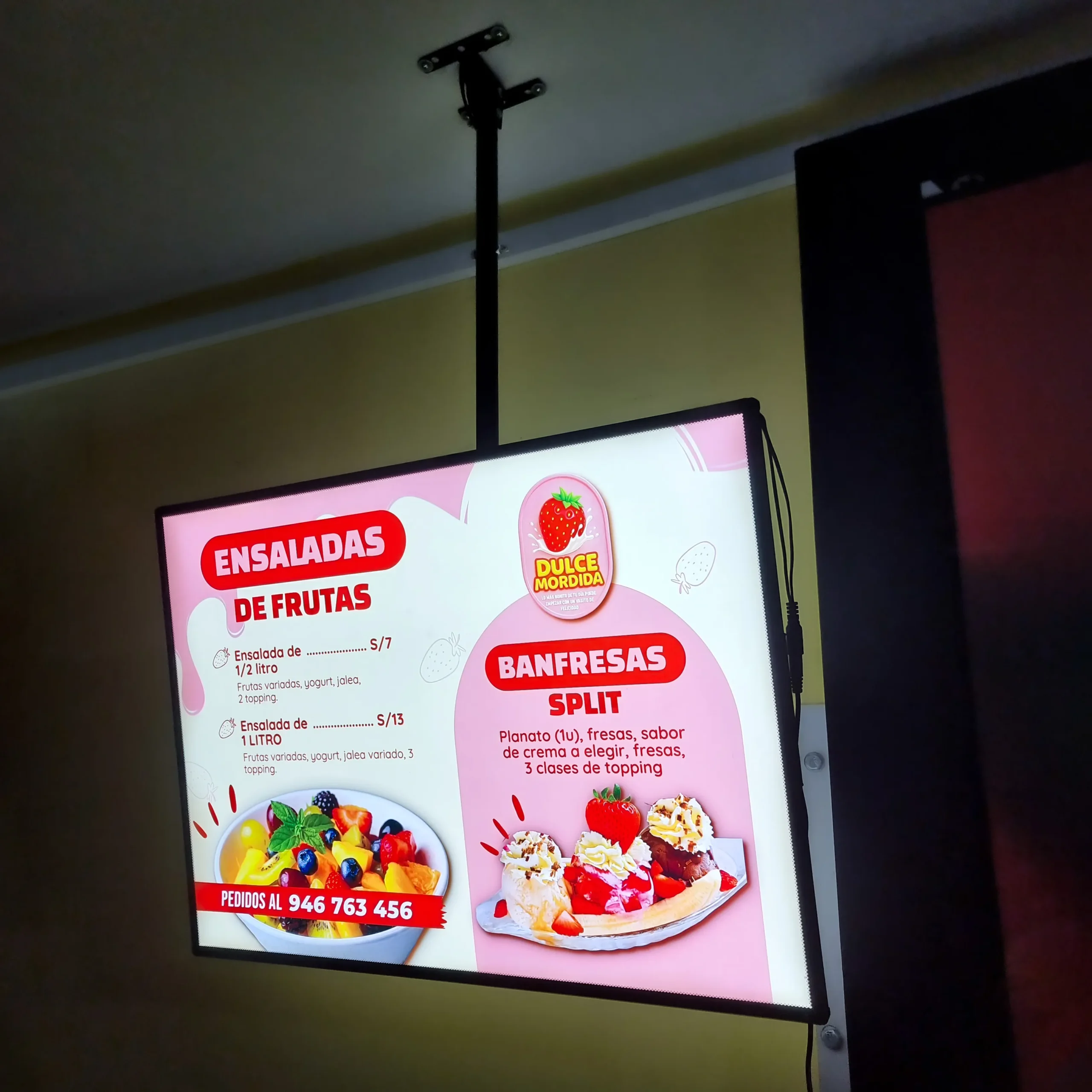 El Panel LED Colgante es la solución perfecta para destacar promociones, menús o anuncios en interiores.