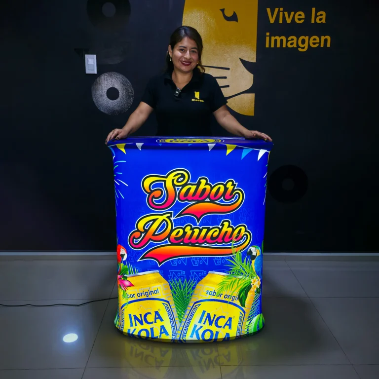 Fabricado en tela sublimada full color, ofrece una gráfica de gran calidad visual, perfecta para destacar en activaciones, ferias, puntos de venta, ingresos a locales, eventos corporativos y más.